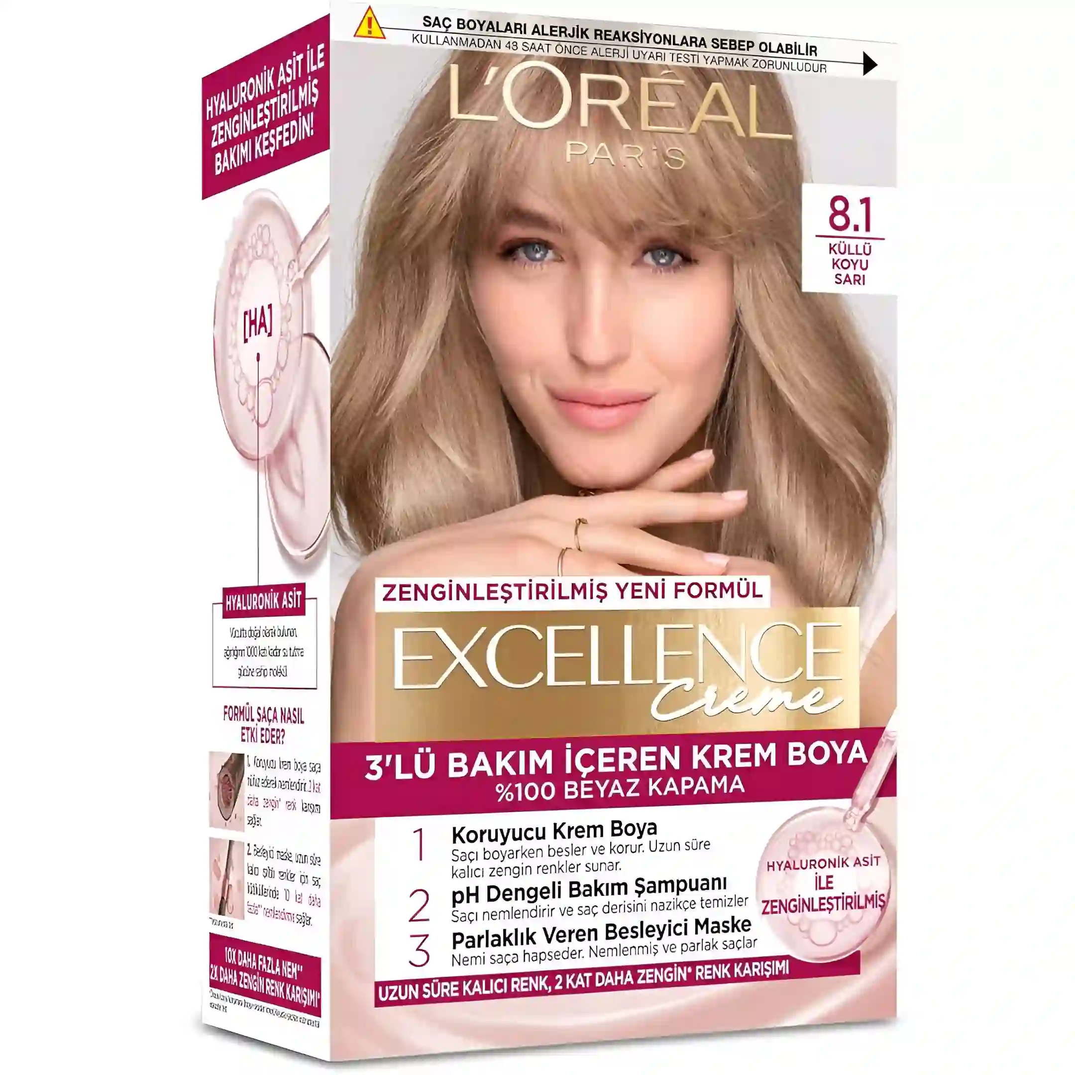 رنگ موی زنانه شماره 8.1 لورئال اکسلنس L’Oréal Excellence 8.1 Kullu Koyu Sari | بلوند تیره دودی