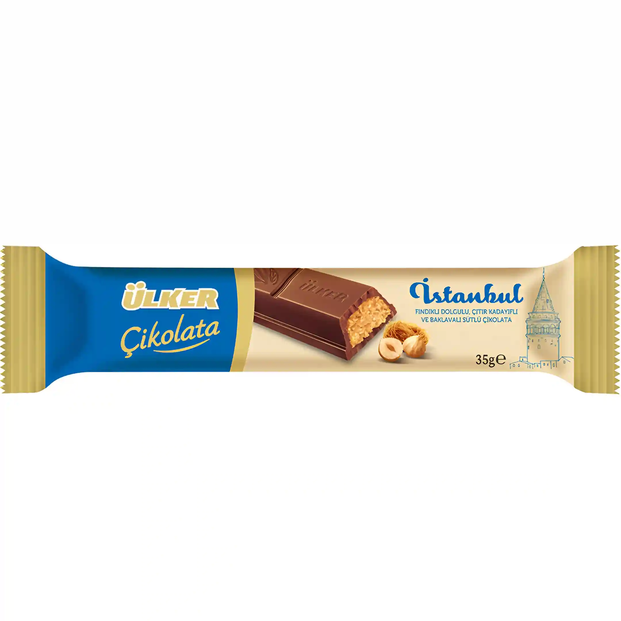 شکلات اولکر Ulker مدل استانبول Istanbul با مغز کرم فندقی کریسپی وزن 35 گرم
