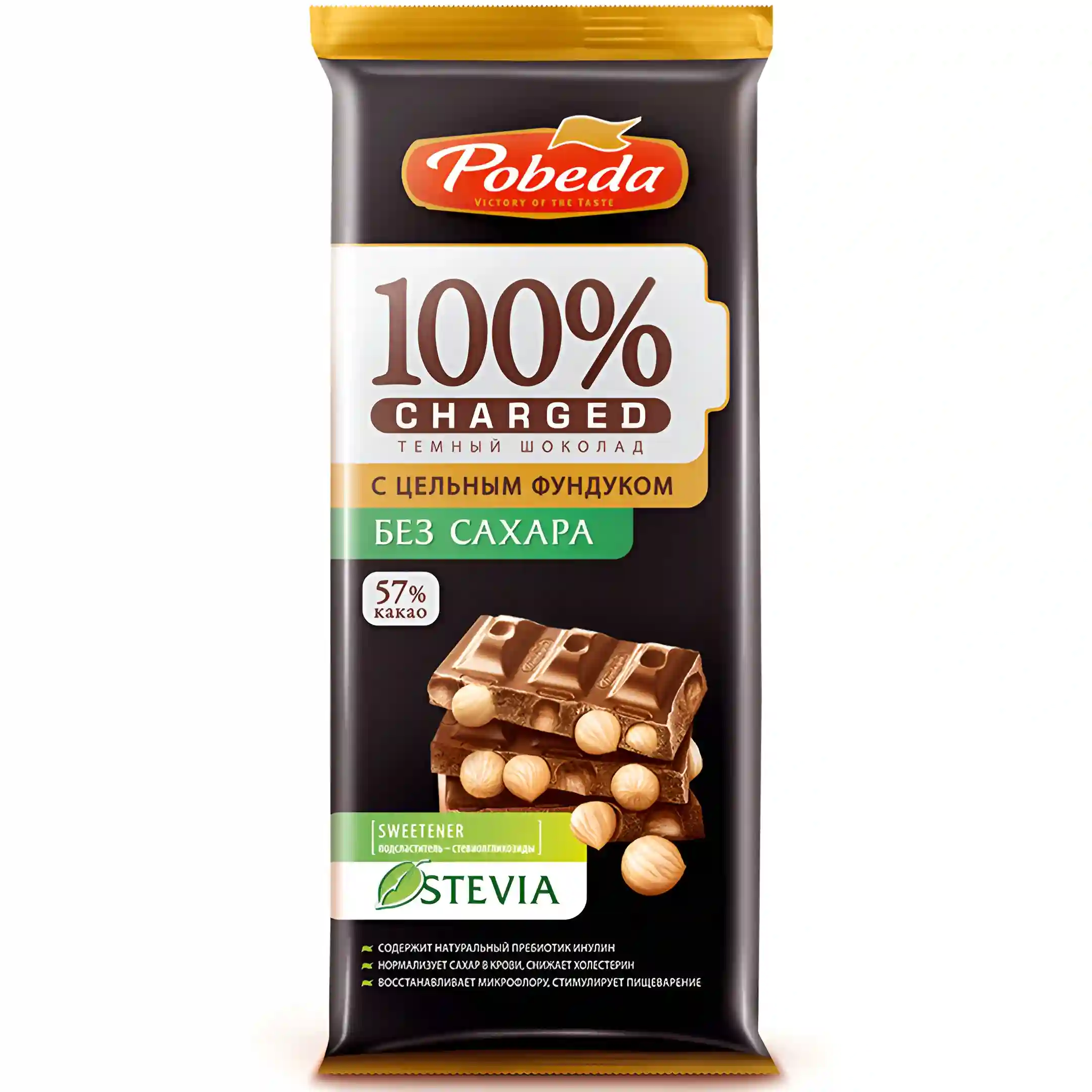 شکلات 57% پوبدا استویا مغز فندق Pobeda وزن 100 گرم