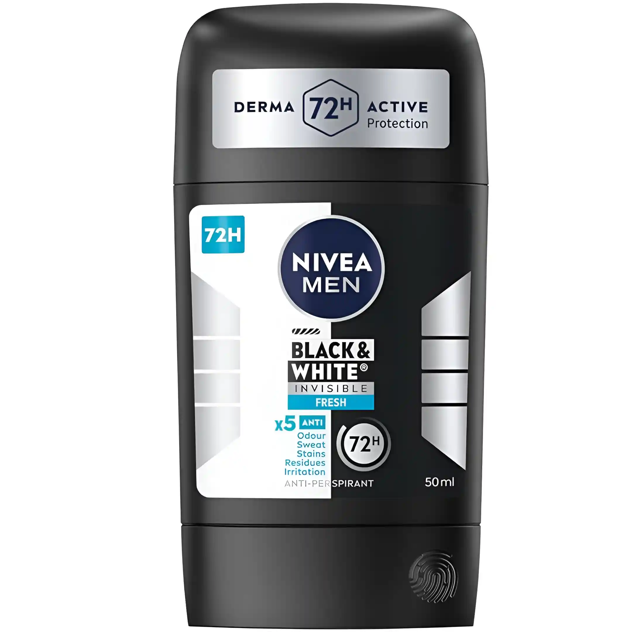 مام استیک ضدتعریق مردانه سیاه و سفید اینویزیبل نیوآ Nivea Black & White Invisible Fresh حجم 50 میل