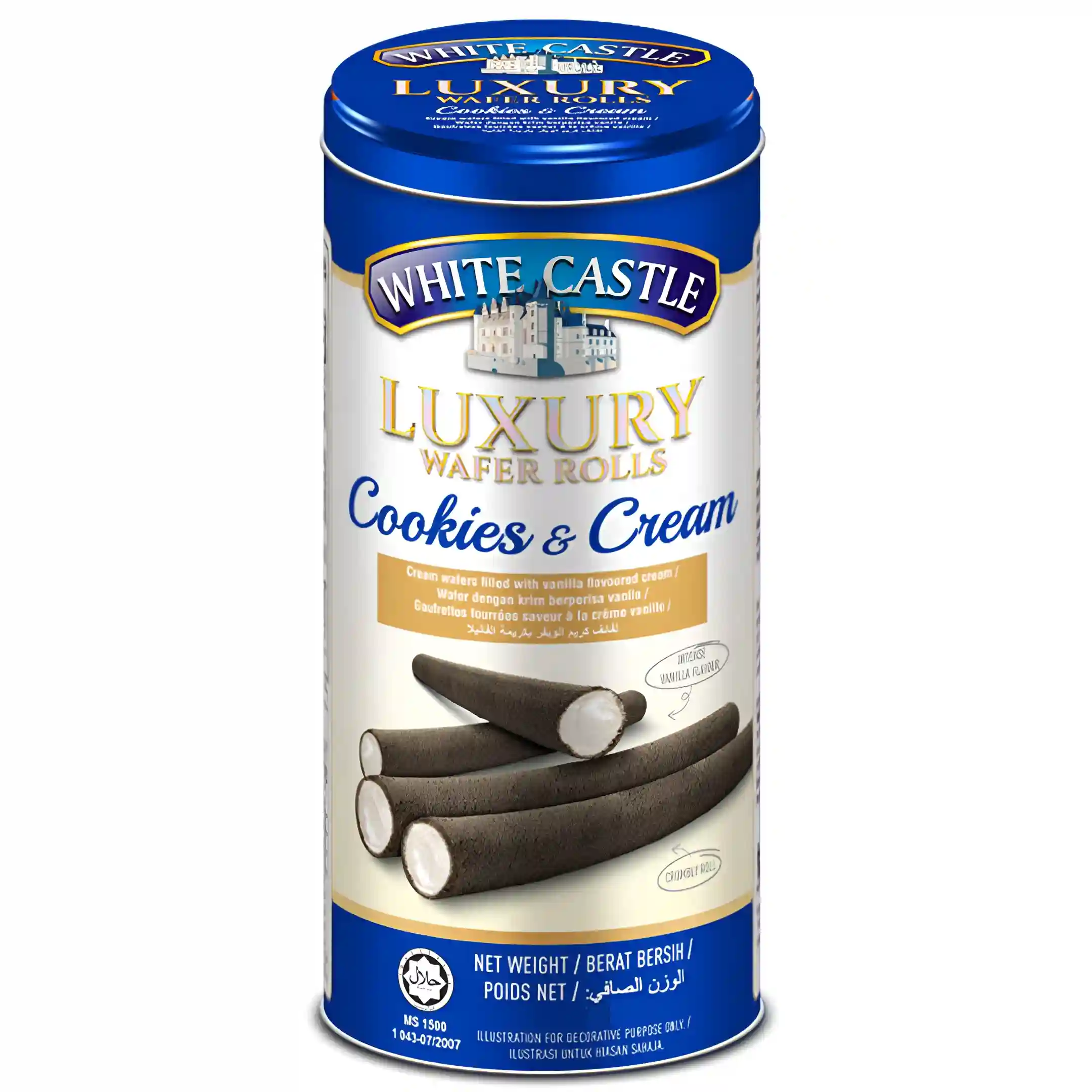 ویفر رولی وايت کستل با کرم کوکی و خامه White Castle Cookies & Cream وزن 300 گرم