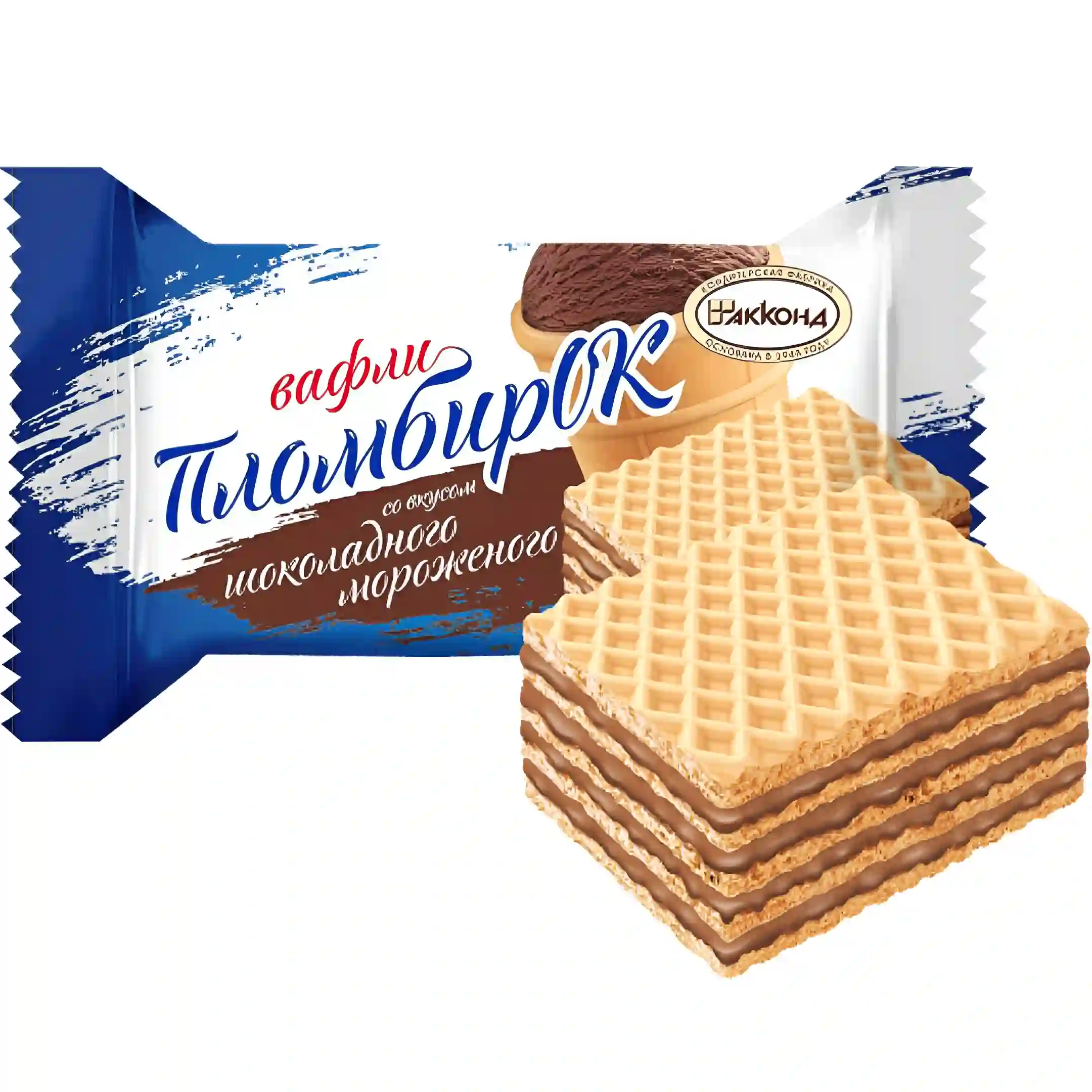 ویفر Akkond Plombirok با کرم بستنی شکلاتی، ترکیبی لذیذ از ویفر ترد و کرم شکلاتی غنی با طعم بستنی است