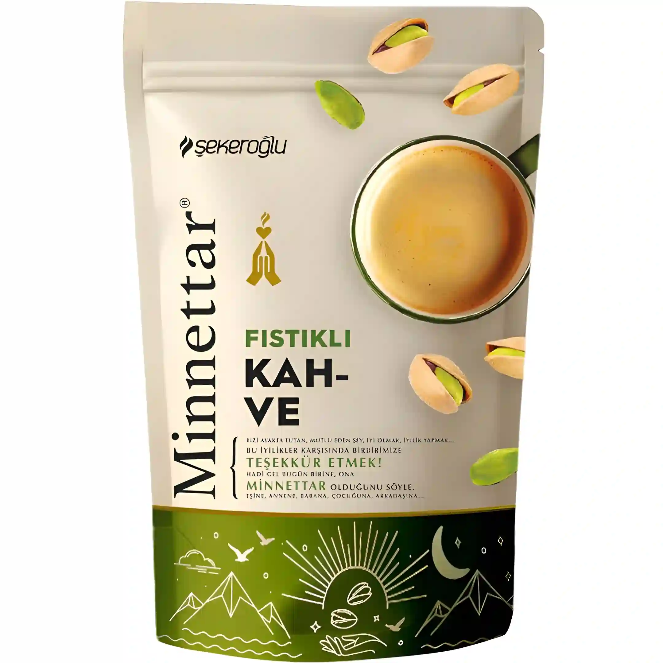پودر قهوه مینتار شکراوغلو با طعم پسته Minnettar Şekeroğlu Fistikli Kahve وزن 165 گرم